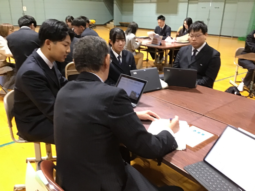 本日、3年生の5・6時間目に知内町議員の方々を招いて、高校生議会が行われました。生徒たちはこの日のために農業や漁業などの各セクションに分かれ、議題に関する準備をしてきました。