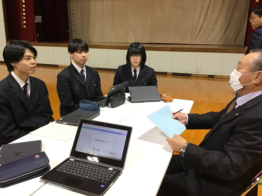 各グループに1人の議員の方が付き、どうしたら知内町を盛り上げることができるのか話し合いました。生徒たちはそれぞれが考えてきた提案を発表し、実現可能かどうか議員の方々から意見をいただきました。