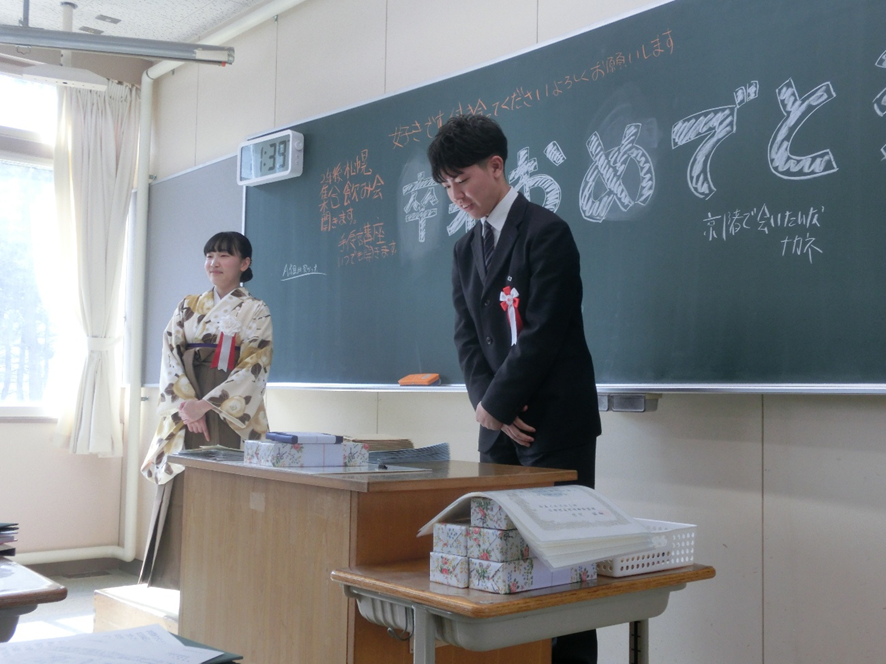 式では、一人一人が堂々とした姿で卒業証書を受け取り、在校生代表の送辞や卒業生代表の答辞には、これまでの思い出や感謝の気持ちが込められており、会場は温かな雰囲気に包まれました。
